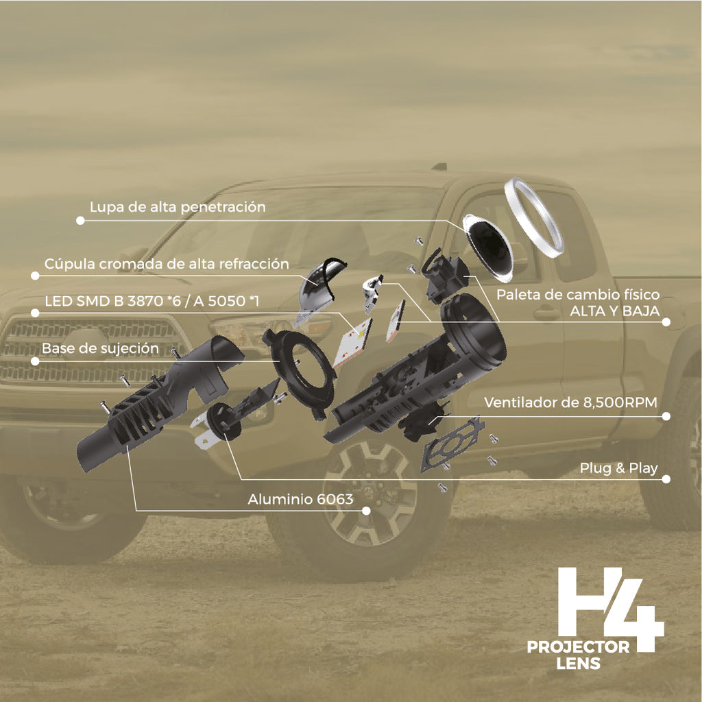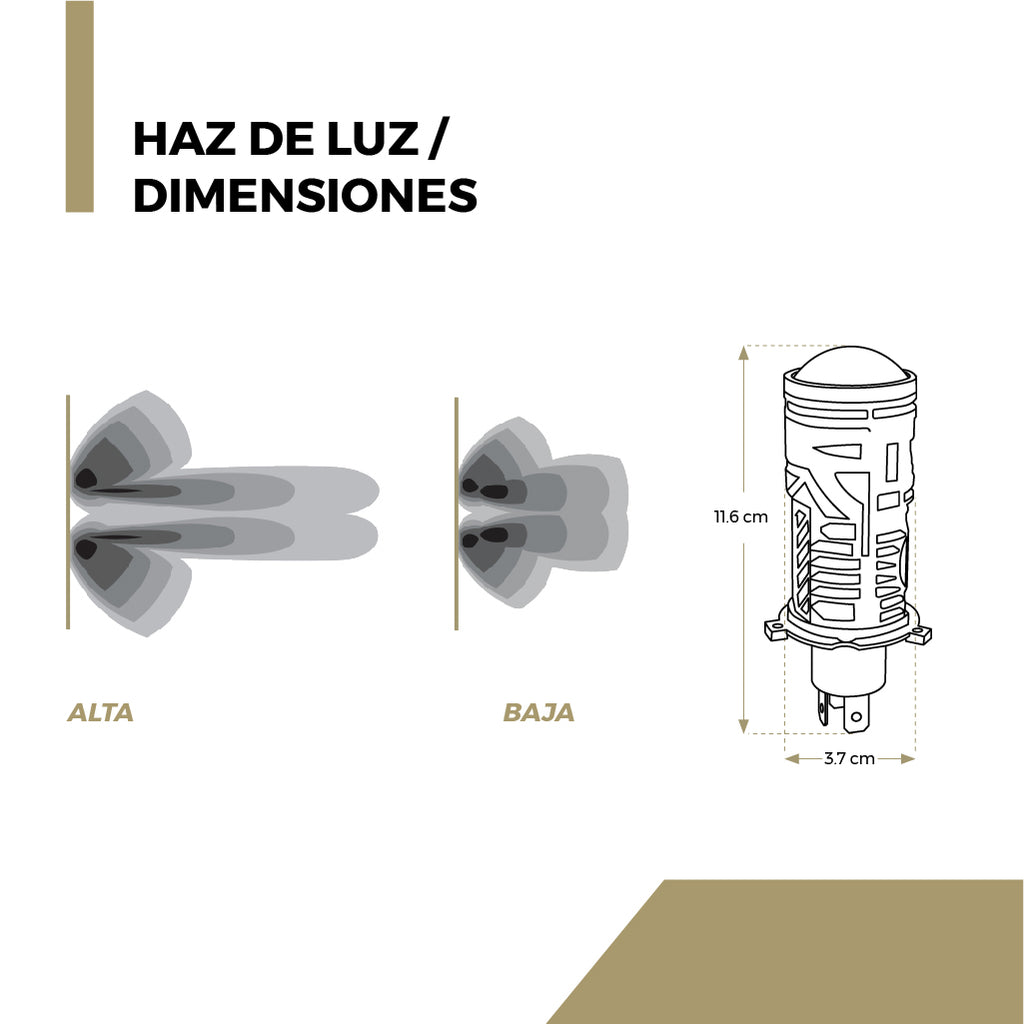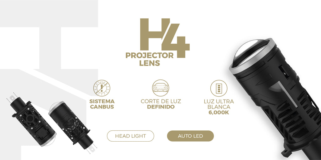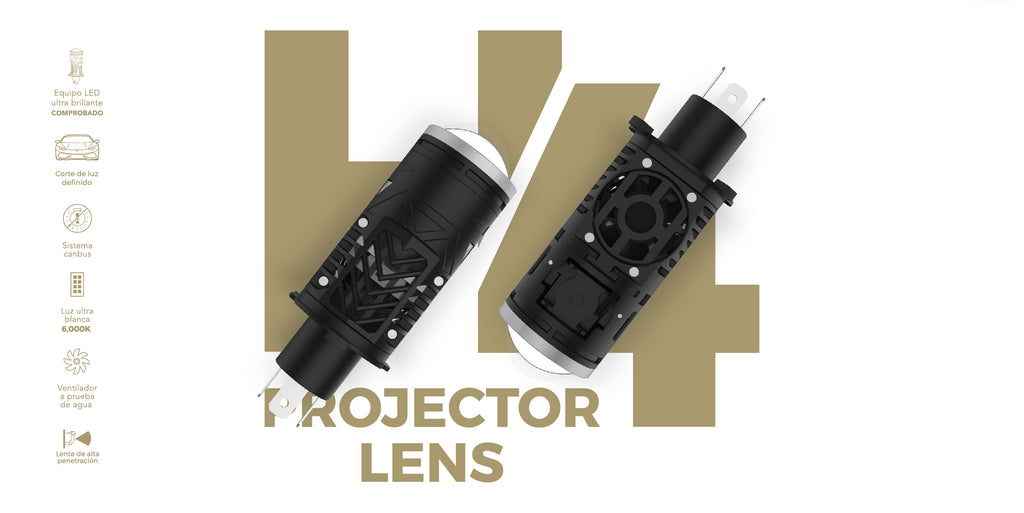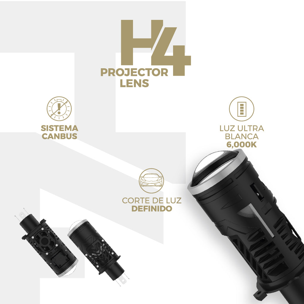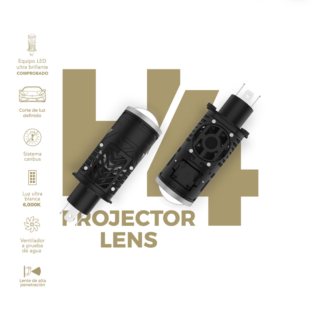 Kit de luces LED ILLUME Premium H4 Projector Lens se eleva a un nivel superior con una proyección de luz más brillante, corte de luz perfectamente afiliado y definido y durabilidad mejorada, integra un Módulo LED CSP grado automotriz de alta potencia, obtendrás mayor visibilidad que con tus focos de halógeno actuales (hasta 200%).